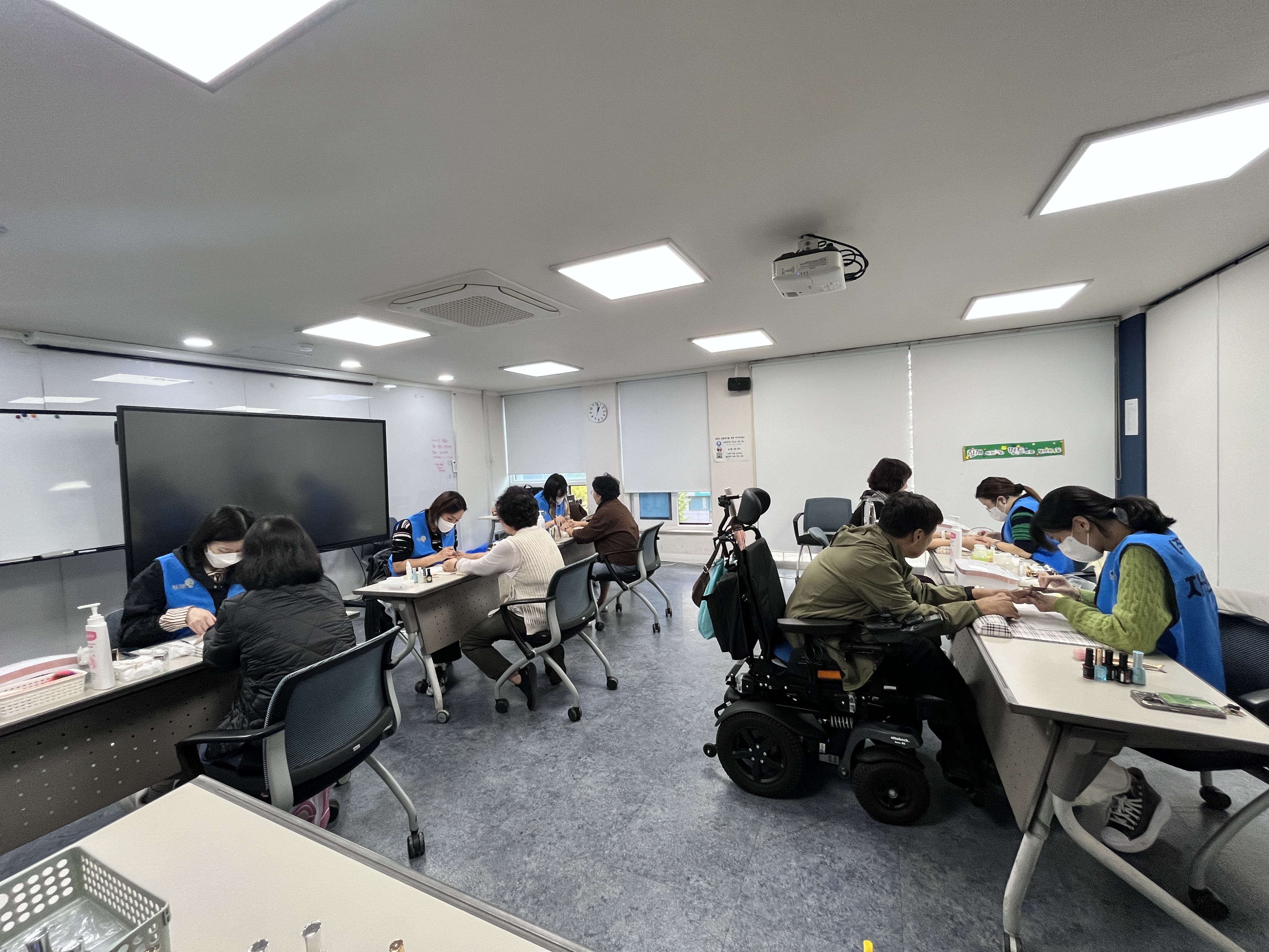 ‘25년 10월 지역주민과 함께 소통하는 봉사활동이번 봉사활동은 ‘장애인아카데미’ 기관에 방문을 했다. 장애인 대상으로 기초학력교육, 평생교육, 발달장애인 맞춤용교육자료개발등 다양한 사업을 하고 있는 기관으로 지난 9월 ’영등포구 인권축제 ‘휠더월드’ 봉사활동에서 큰희망의 행사참여를 보고 요청을 하여 방문을 했다. 발달, 시각, 지체등 다양한 이용자분들께서 손케어를 받기 위해서 우리를 기다리고 있었고, 총 20여분에게 칼라네일, 큐티클제거등 손케어를 진행했다. 이뻐진 손을 보면서 밝게 웃으며,감사의 인사를 전하였고, 다음에도 꼭 재방문을 부탁을 하셨다. 이번 봉사활동 지역주민과 함께 보람되고 뿌듯한 시간을 가졌다. ![]() ![]() |