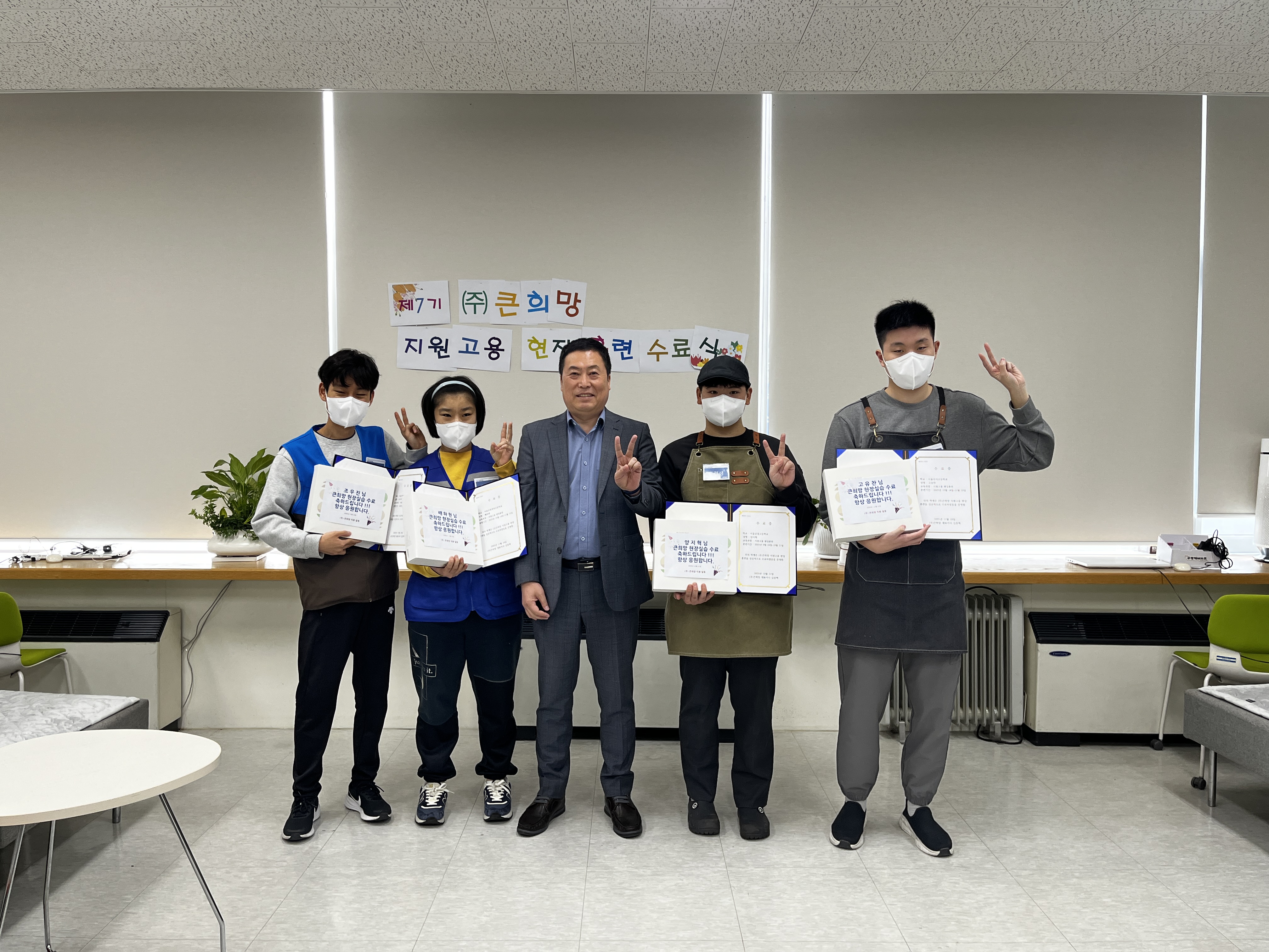 장애 청소년 직업교육훈련ㆍ일자리 채용으로 ESG 경영 실천태광그룹 계열사 티시스의 장애인표준사업장 ‘큰희망’이 30일 오전 서울 영등포구 큰희망 사업장에서 ‘예비초년생 중증장애인 직업교육훈련 제7기 수료식’을 개최했다. 이번 직업교육훈련에는 사회 진출을 앞둔 고등학교 3학년 중증장애인 4명이 참여했으며, 지난 9월 29일부터 4주간 ▲바리스타 ▲우편택배 ▲편의점 ▲구내식당 ▲환경지원파트 등 다양한 직무훈련과 ▲직장 예절 및 직무 태도 등 직장 적응 교육 과정을 이수했다. 큰희망은 2019년부터 한국장애인고용공단 남부지사와 협력해 중증장애인 직장 적응훈련 프로그램을 운영하고 있다. 이번 7기 수료생을 포함해 지금까지 총 62명이 수료를 마쳤다. 큰희망은 이번 7기 수료생 중 1명을 정식 채용하여 훈련 지원을 넘어 실제 고용으로 이어지는 선순환 모델을 구축하고 있다. 특히 지자체가 훈련 프로그램 운영 기관에 지원하는 훈련보조금을 지역 복지기관에 전액 기부하는 나눔 활동도 이어가고 있다. 큰희망은 전체 직원의 92%를 장애인으로 고용하고 있으며, 안정적인 근로환경 조성 노력으로 근로자의 5년 이상 근속률이 97%(‘23년도 기준)에 달한다. ▲바리스타 ▲우편택배 ▲편의점 ▲구내식당 ▲환경지원 ▲헬스케어 ▲네일아트 ▲구두정비 등 8개 직무를 운영하며, 근로자가 적성에 맞는 업무를 경험하고 직무 역량을 쌓을 수 있도록 지원하고 있다. 이같은 노력은 대외적으로도 인정받고 있다. 큰희망은 2024년 장애인 일자리 창출 공로로 국무총리 표창, 2023년에는 서울특별시장 표창을 수상하며 모범적인 장애인 고용 및 사회공헌 기업으로 평가받았다. 김중혁 큰희망 대표이사는 “큰희망은 장애인 근로자들이 자립하고 성장할 수 있는 지속 가능한 일자리 모델을 만드는 것이 목표”라며 “태광그룹의 ESG 경영 이념을 바탕으로 직원들이 자긍심을 갖고 일할 수 있는 행복한 직장을 만들어가겠다”고 말했다. ![]() ![]() ![]() ![]() |